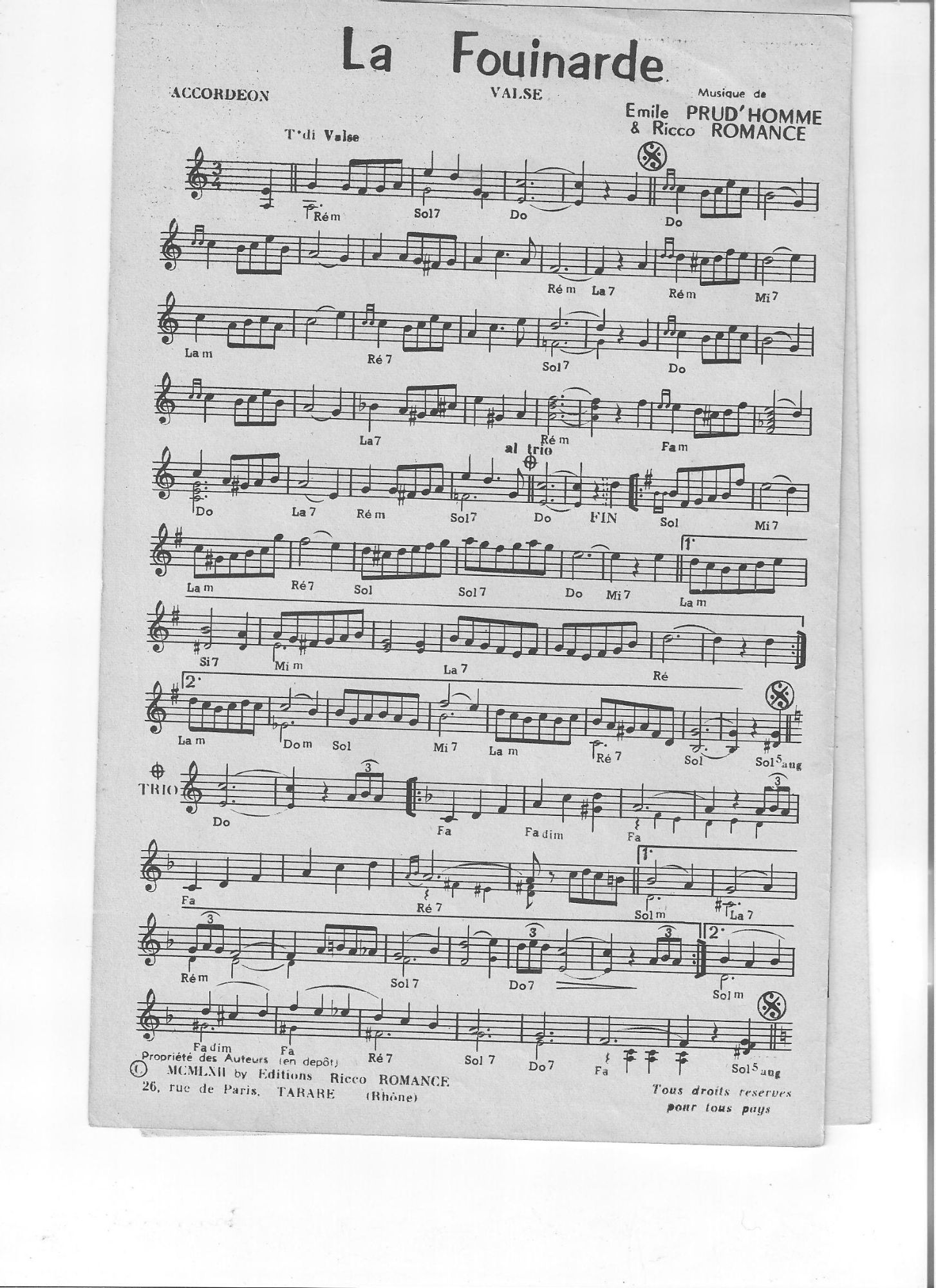 Biographie Émile Prud’homme. Il est un accordéoniste et chef d’orchestre français, très populaire à Paris, dans les année d’avant guerre. Emile est né le 6 juin 1913 à Aubervilliers, dans une famille de mélomanes, son oncle Fernand joue de l’accordéon, l’oncle Gaston joue du piano et sa mère de la batterie. C’est Fernand qui un jour offre à Emile un «Cavagnolo»